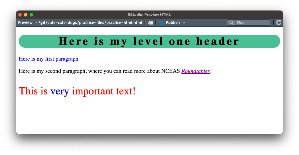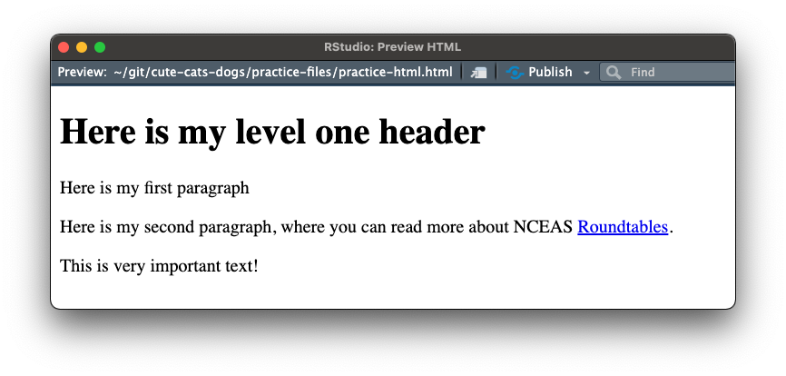 Check out the following HTML by opening the practice-html.html file in RStudio