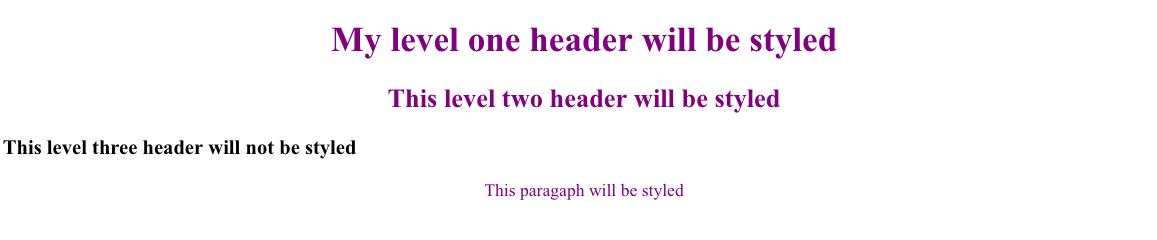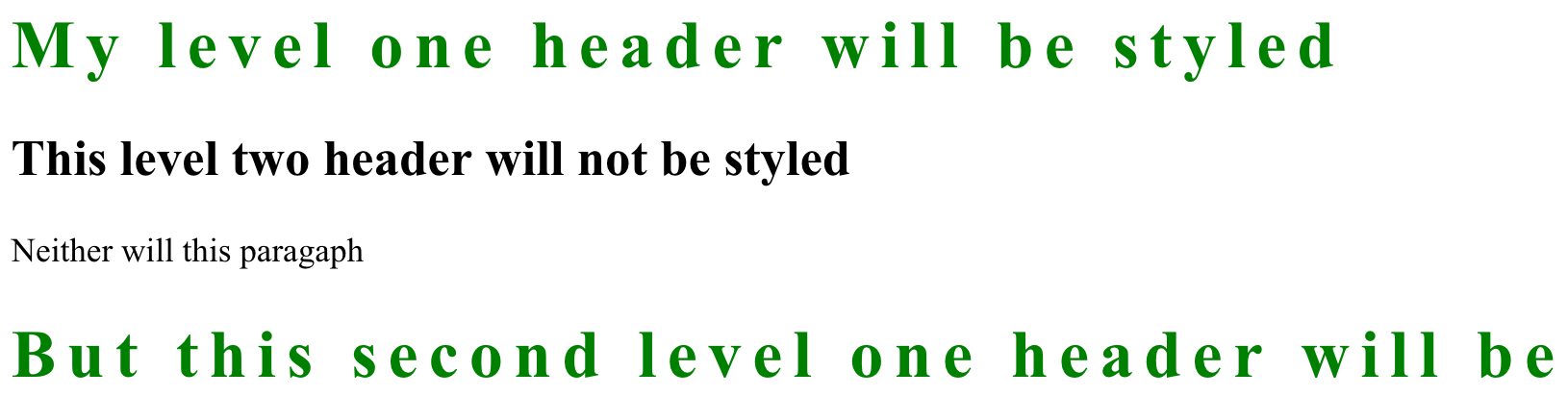 <h1>Here is my level one header</h1>