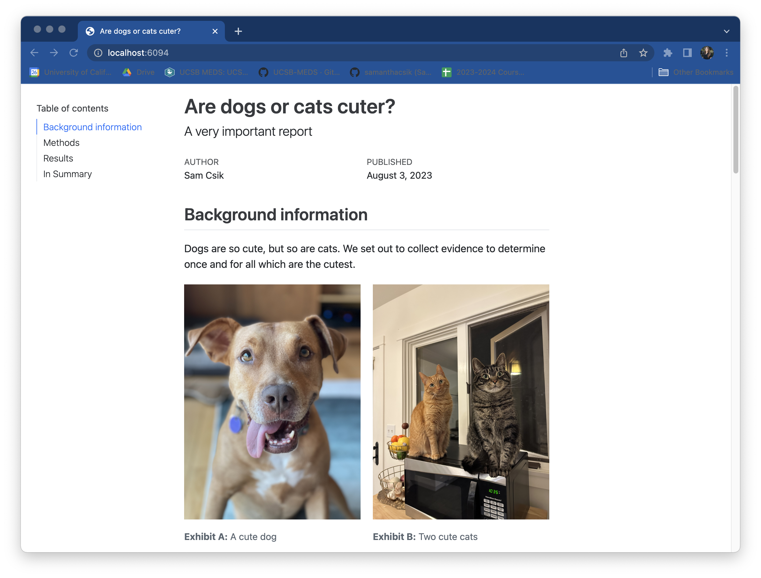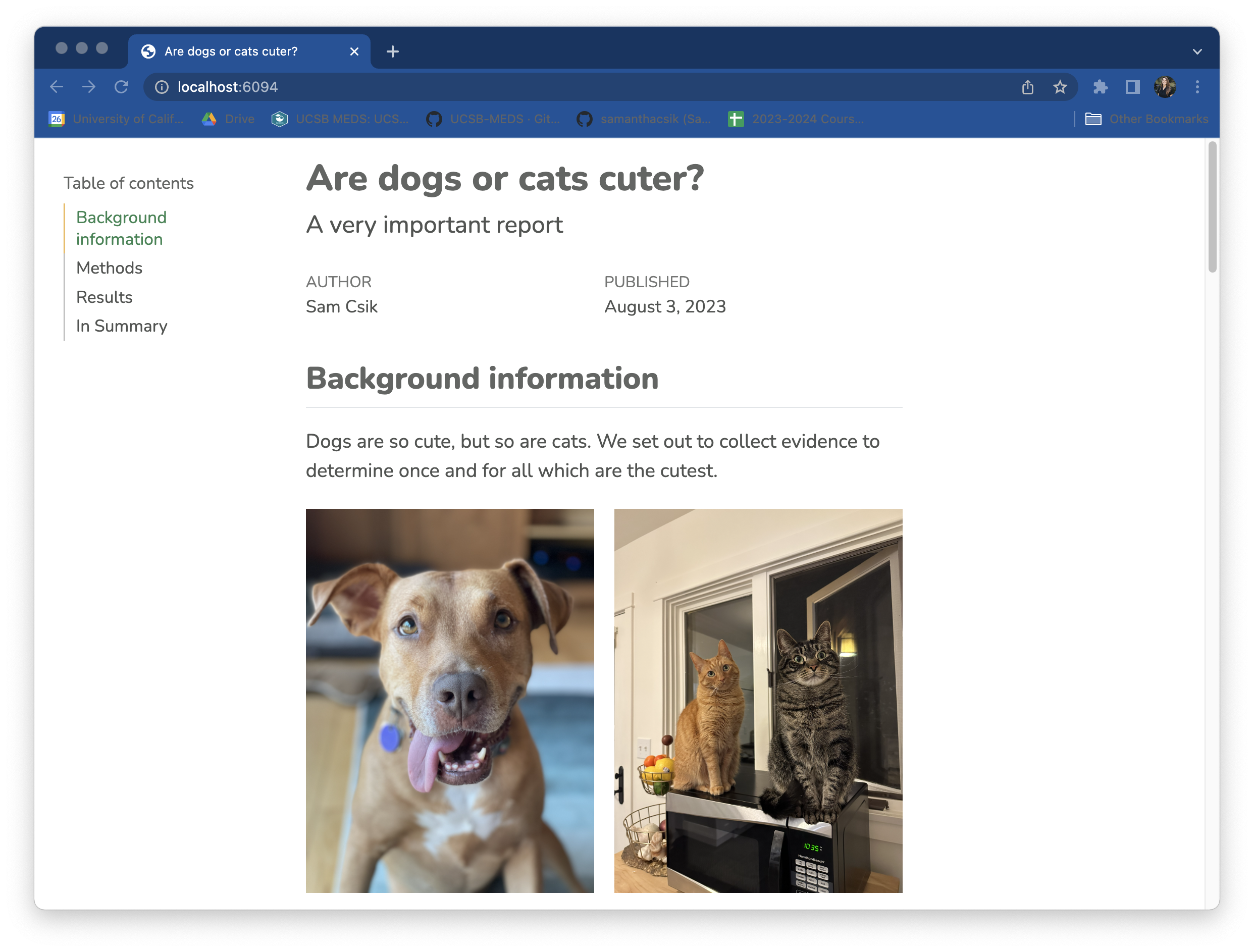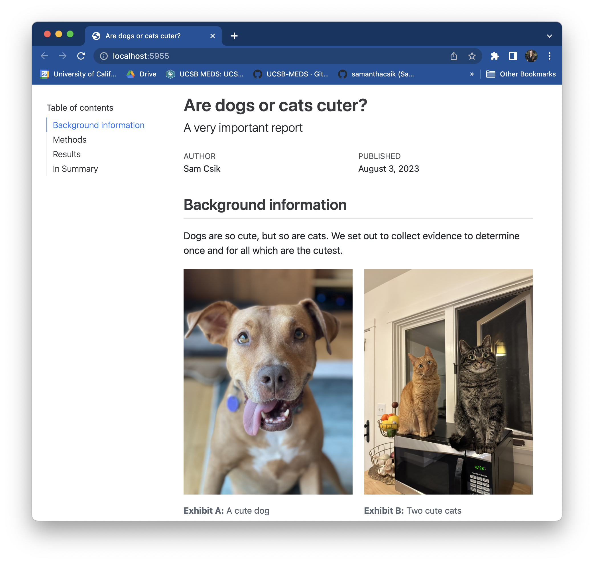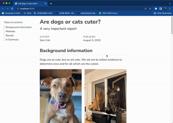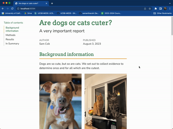 .scss file in the report/ folder – you can do this using the touch command in the RStudio terminal (You may need to first cd (change directory) into this folder using the terminal, or manually move your .scss into the report/ folder after creating it):/*-- scss:defaults --*/ and /*-- scss:rules --*/ region decorators to cuteness-report.scss (required by Quarto):Apply your .scss stylesheet to your .qmd